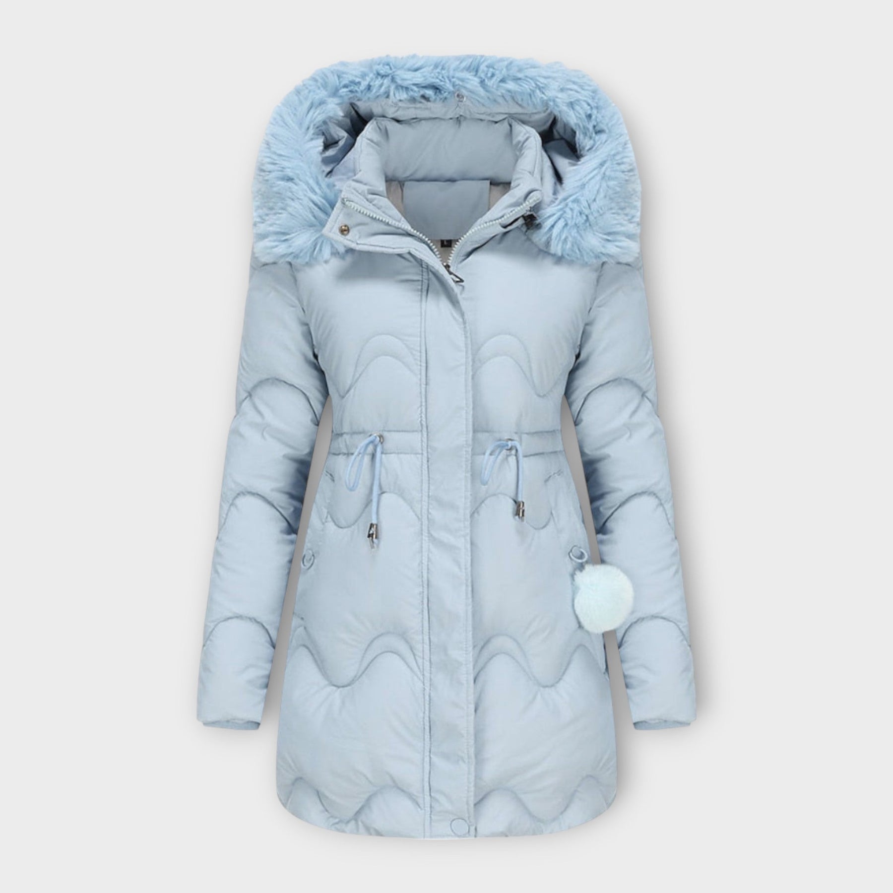 Wrap yourself in sophistication with this beautifully tailored winter coat, designed to combine timeless elegance with practicality. Its flattering silhouette, premium quilted design, and plush trim make it a go-to for polished day-to-night winter styling.